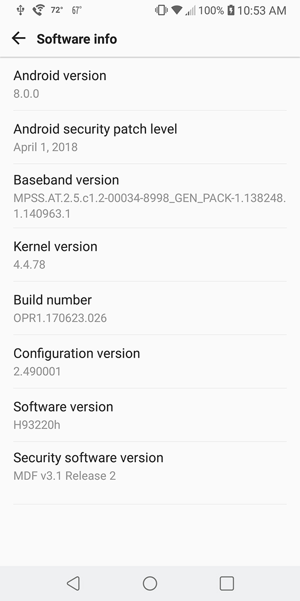 This update is version H93220h, which is the same version that first started rolling out earlier this month. In addition to a bump to Android 8.0, that update included the April 1, 2018 Android security patches.