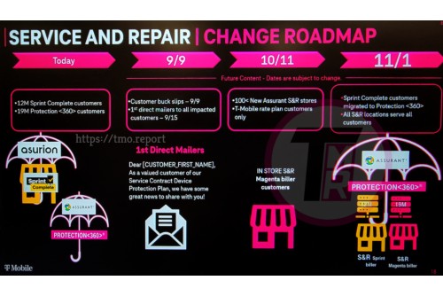 In addition to merging the two plans, T-Mo intends to transform its Sprint Asurion repair stores into T-Mobile Assurant stores by October 11th. The first phase of the merger is to service only T-Mobile rate plans. Sprint Complete customers will become eligible by November 1st as soon as the migration to a Protection <360> plan has been completed. This will then allow all repair stores to service the two rate plans, which will cover approximately 19 million T-Mobile and 12 million Sprint customers.