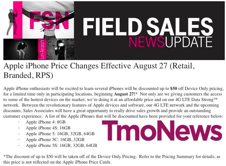 Up to $50 off all T-Mobile iPhones from tomorrow