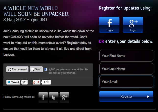 Well, hello again “The Next Galaxy,” as Samsung posts a new sign-up page for Galaxy S III information leading up to the May 3rd launch. You can use your Facebook, Google+ or plain old … [read full article]