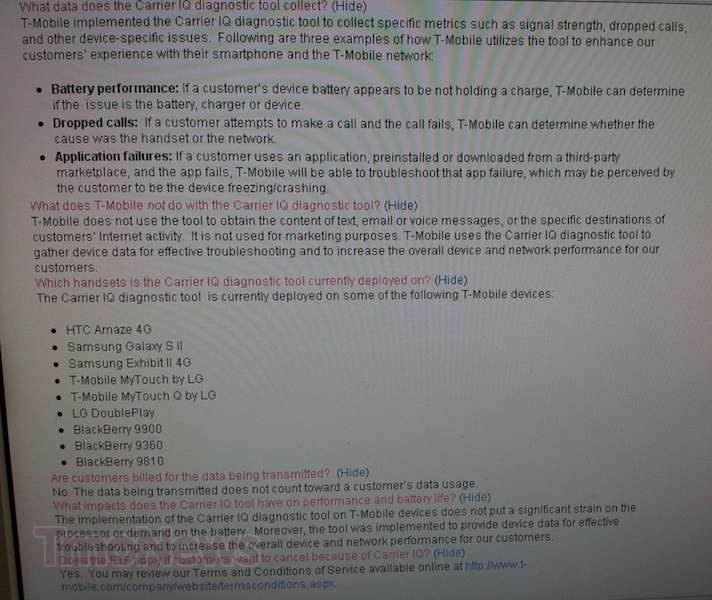 List Of Currently Sold T-Mobile Devices With Carrier IQ Software