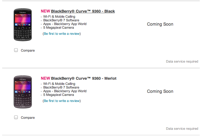 Update: Not 5 minutes after we post that the Curve 9360 have been discovered on T-Mobile.com as coming soon, we receive an email announcing the official launch! The Curve will be available in an exclusive pre-sale for business customers beginning today, September 21 and available at T-Mobile retail stores on September 28th for everyone. The exclusive Merlot color will be available starting on October 12th. The Blackberry … [read full article]