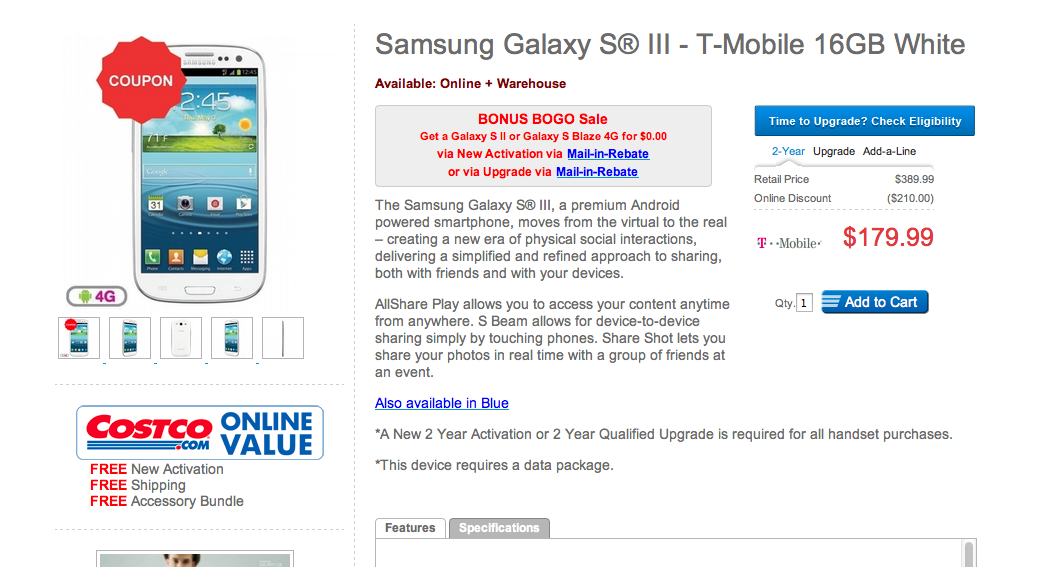 Costco offering $150 Cash Card with purchase of T-Mobile Galaxy S8