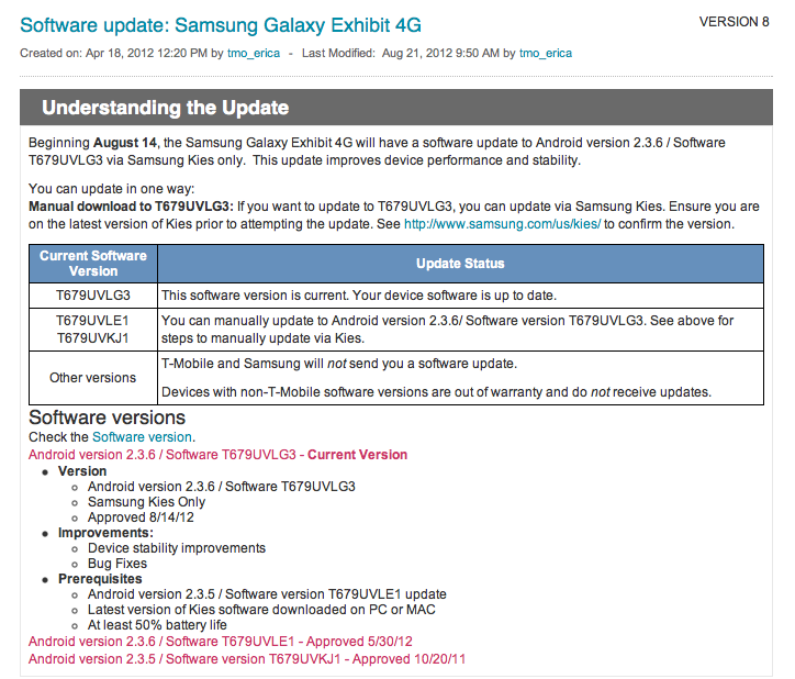 T-Mobile’s Galaxy Exhibit 4G, formerly known as the Exhibit II 4G, formerly known as the device T-Mobile rebranded for unknown reasons is set to receive a minor software update. Regardless of the name, the device will receive a maintenance update with a few bug fixes and improvements. Sorry, no Ice Cream … [read full article]