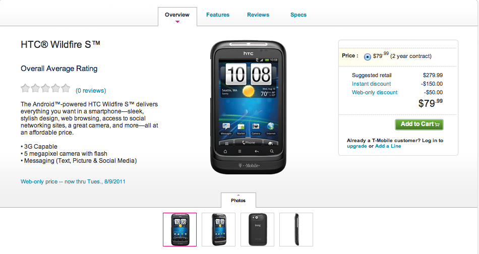 Happy Wednesday morning TmoNews readers and welcome to the wonderful world of the HTC Wildfire S which is now on sale for $79.99 through T-Mobile.com. With a 3.2″ display, Android 2.3 covered by HTC Sense and a 5 megapixel camera with flash the Wildfire S is an affordable introductory smartphone to the Android game. Pick up yours at … [read full article]