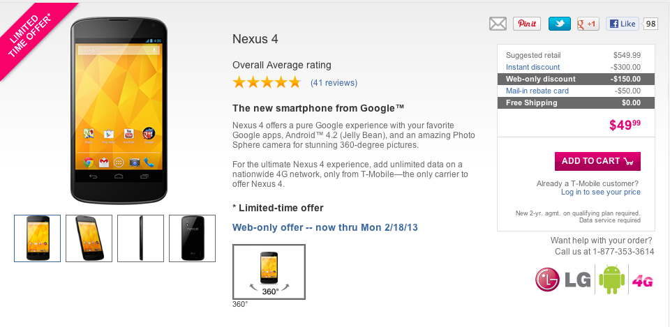 Deal Of The Day: Nexus 4 Just $49 On T-Mobile.com Through February 18th