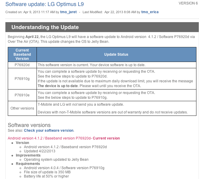 For reasons unknown T-Mobile has halted the Jelly Bean rollout for the LG Optimus L9. As of 3:50pm this afternoon, T-Mobile updated their support page for the software update with a brief statement: “LG has paused the update … [read full article]
