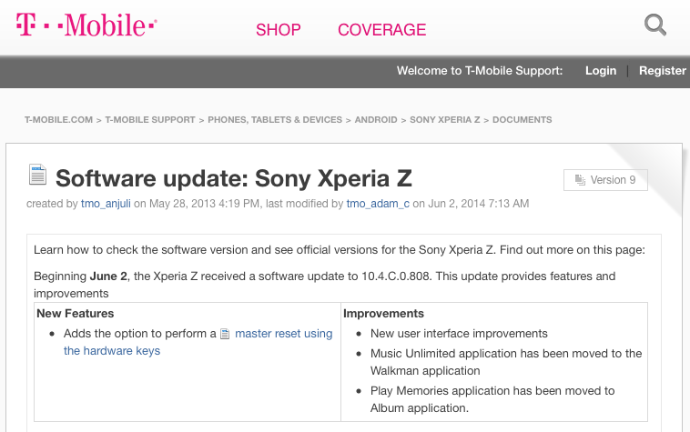 T-Mobile Xperia Z gets firmware update