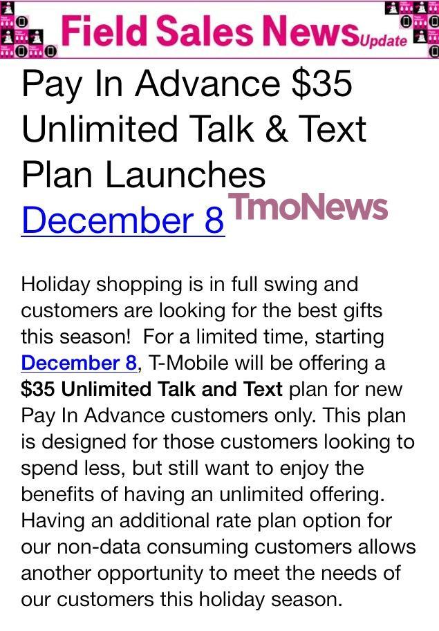 New $35 unlimited talk and text prepaid plan coming on December 8th – UPDATE: Official Statement