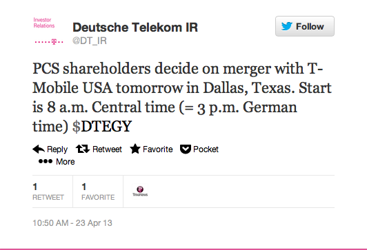Just a quick reminder for everyone out there that tomorrow marks D-Day for the T-Mobile USA/MetroPCS merger. Widely expected to go through after Deutsche Telekom upped the offer, MetroPCS shareholders will begin voting at 8am Central Time tomorrow. Results are expected later in the day and I expect we’ll … [read full article]